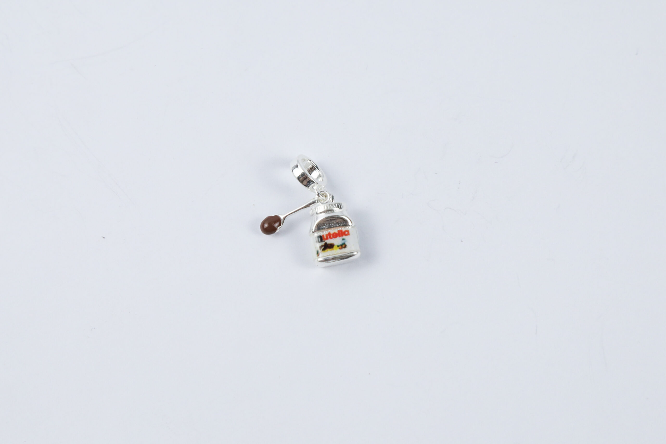 Berloque Nutella em Prata, divertido e detalhado, ideal para amantes de doces e acessórios criativos.